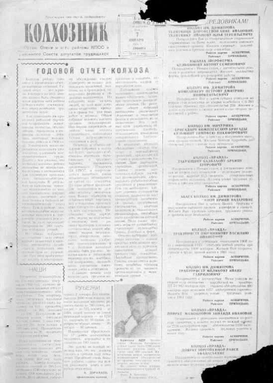 Передовики и маяки: Газета пестрит именами передовых доярок и механизаторов. В номере от 11 января сообщается о дояре Владимире Антонове (удой 3249 кг) и свинарках, получивших по 20 поросят от свиноматки. 25 марта имя дояра Владимира Антонова заносится в республиканскую книгу трудовой славы.