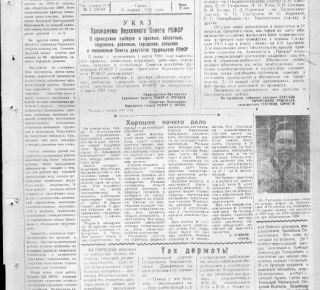 5 марта 1961 года состоялись выборы в местные Советы депутатов трудящихся. Несколько номеров (№ 10, 17, 18) были посвящены этой кампании. Публиковались огромные списки участковых и окружных избирательных комиссий, в которые вошли представители колхозов, лесопунктов, школ и сельпо. Кандидатами выдвигали передовиков производства — свинарку Елену Винокурову, бригадира пилорамщиков Константина Юргина, учительницу Евгению Гомзякову.