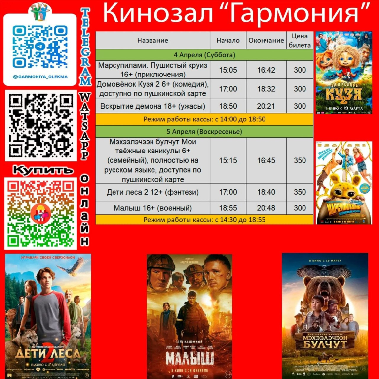 Приглашаем жителей и гостей г.Олекминска на премьерные сеансы фильмов и мультфильмов!
