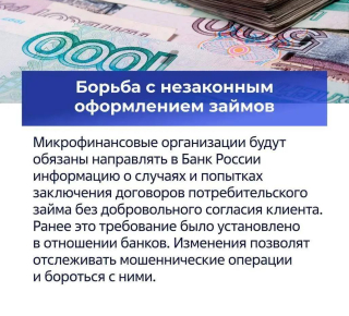 📍Микрофинансовые организации будут обязаны уведомлять Банк России о попытках заключения договоров потребительского займа без добровольного согласия клиента.